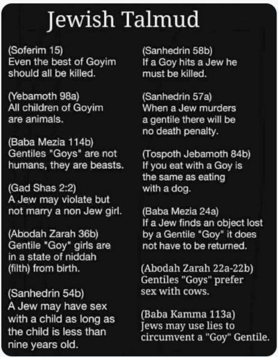 Why would “God” choose one race above another? That is pure racism. Besides, “God” created only Adam and Eve. Where do the other races come from after the “Great Flood”? Pluto? Ah! Because “God” never existed in the first place. It is a concocted story to advance a racist ideology. Then the “chosen” create “laws” seeking to justify that racism by calling other races “beasts” to elevate their own status and pass the blame onto “God the Creator”, who never existed other than living rent-free in the heads of those racists. It is what the Talmud is all about.